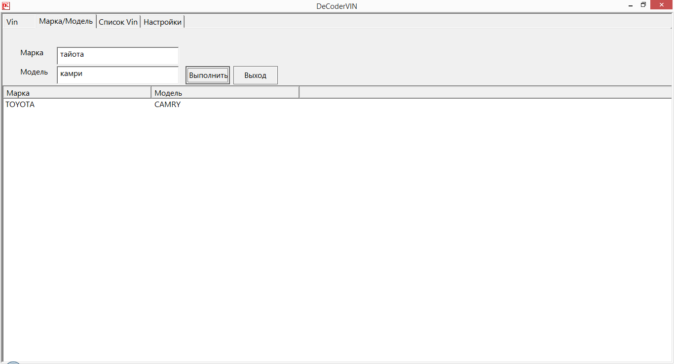 «Декодер VIN номеров транспортных средств»